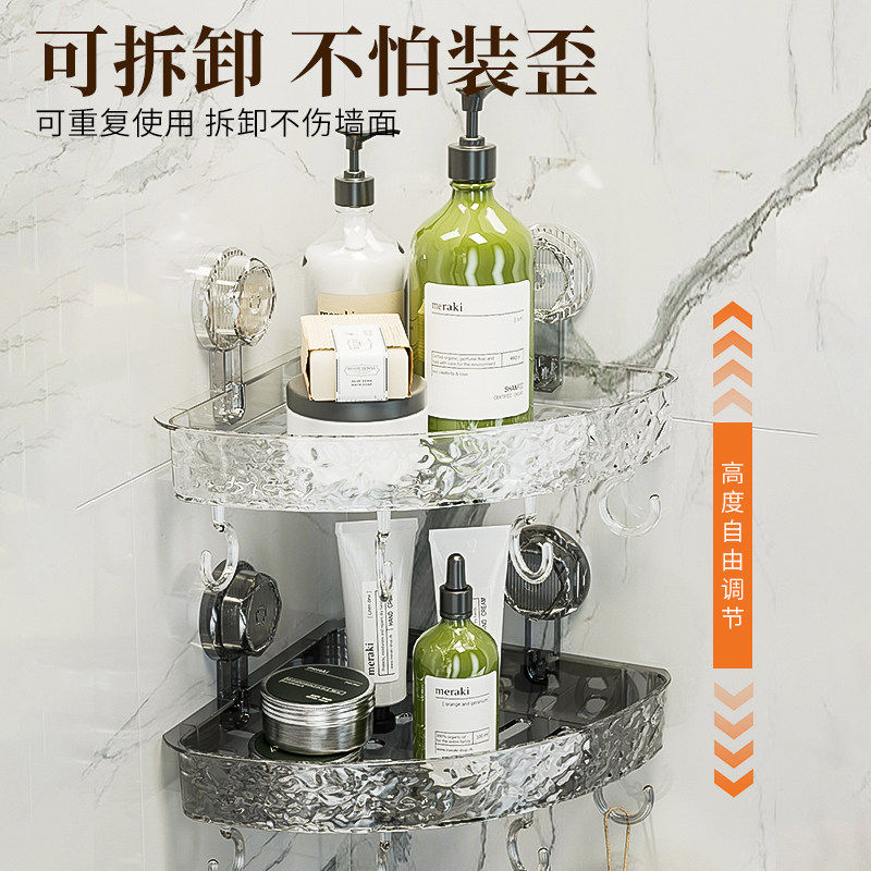 卫生间转角置物架免打孔吸盘壁挂式浴室三角架厕所洗漱台收纳挂架