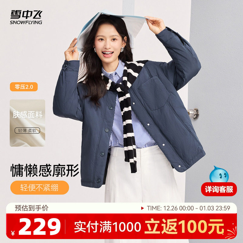 雪中飞2025冬新款女士圆领中式短款零压轻薄羽绒服秋羽简约百搭