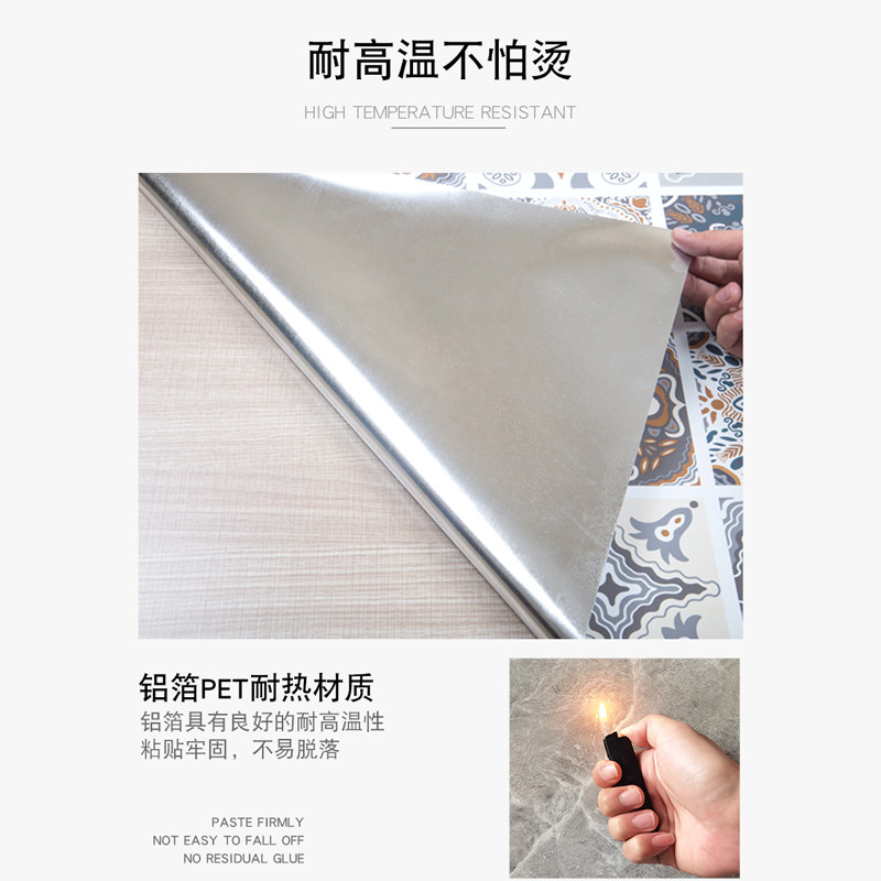 厨房防油贴纸防火耐高温墙贴防水防潮橱柜瓷砖墙纸自粘铝箔纸灶台