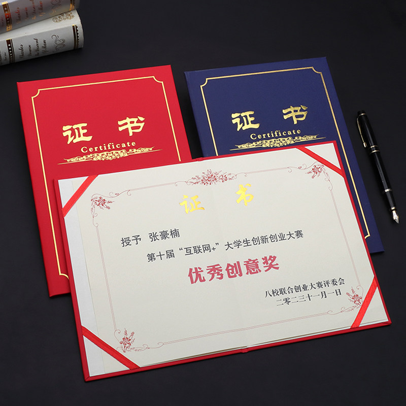 证书外壳定制烫金封皮红蓝色a4硬本社员公司岗位培训合格技能等级荣誉结业证书封套封面获奖状聘书内芯页打印