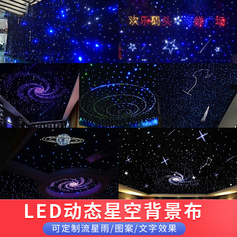 承接定制舞台星空幕布直播间背景布墙婚庆演出LED动态流星灯吊顶