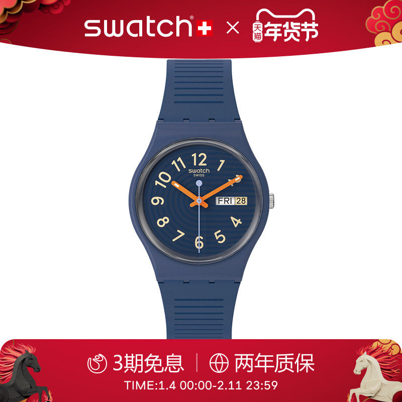 Swatch斯沃琪瑞士手表日历夜光初高中学生石英彩盘手表新年礼物