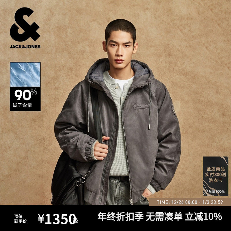 【商场爆款】杰克琼斯男装宽松抽绳连帽绒感面料羽绒服225423032