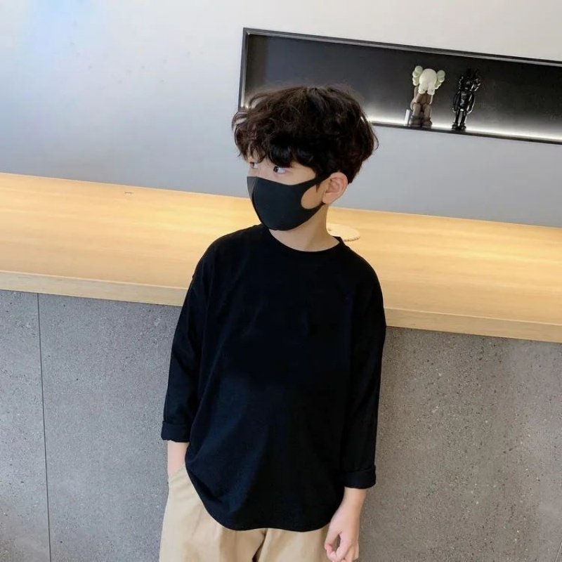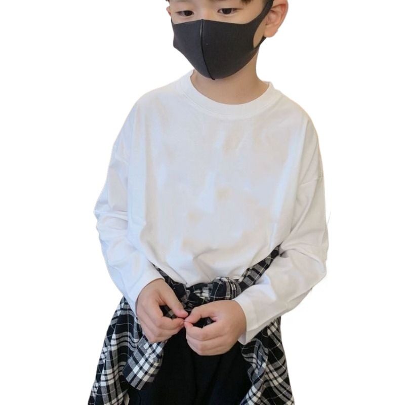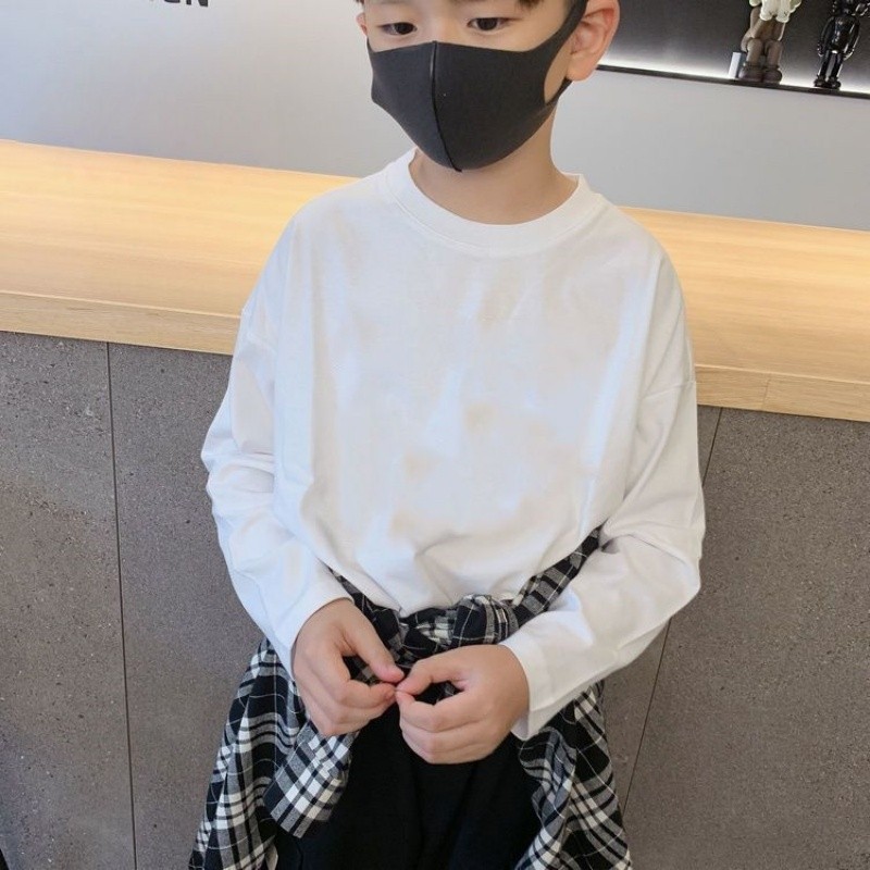 儿童纯白打底衫纯棉男童长袖t袖春秋韩版宽松中大童圆领纯色班服