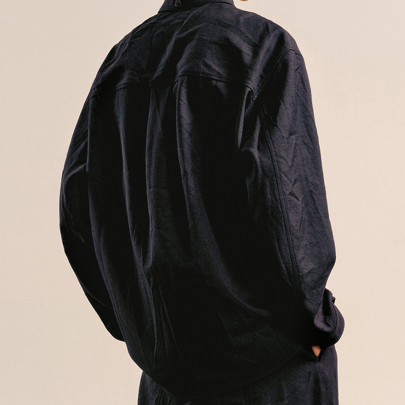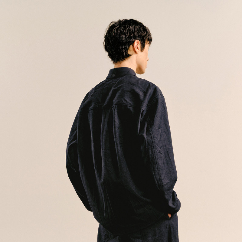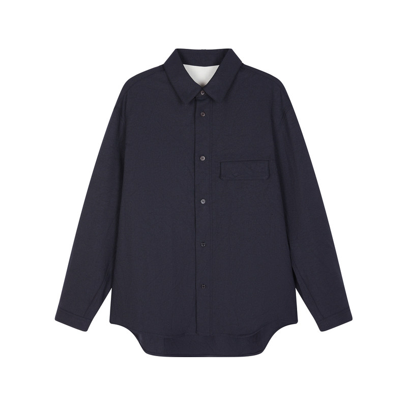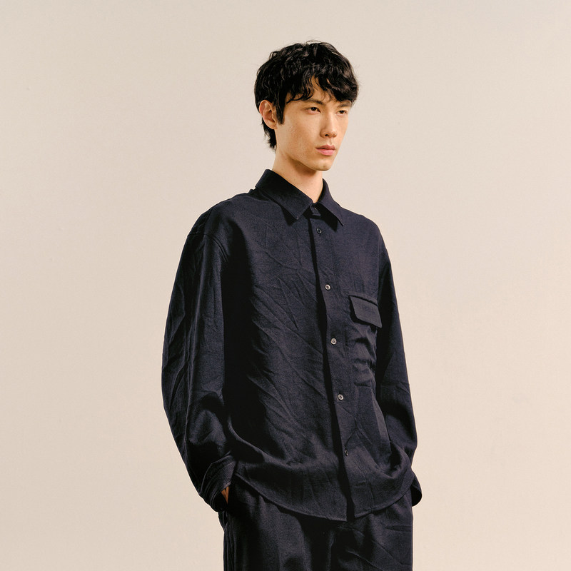 速写男装秋冬新款衬衫长袖宽松休闲复古舒适设计感纯色衬衣上衣潮