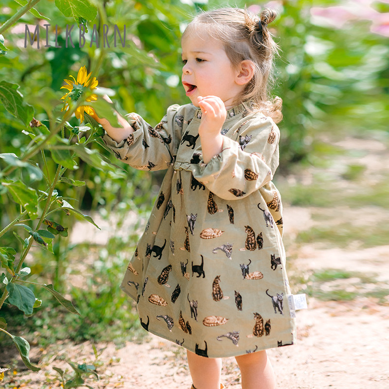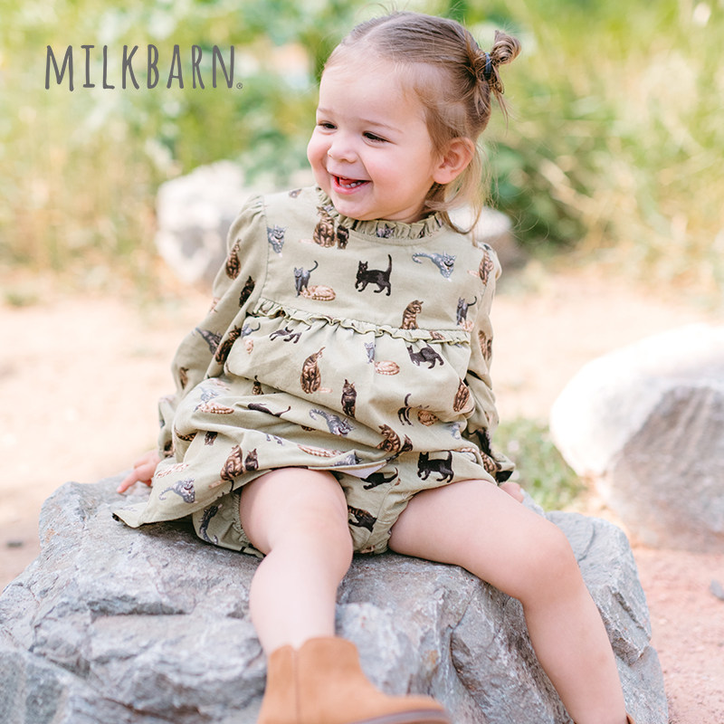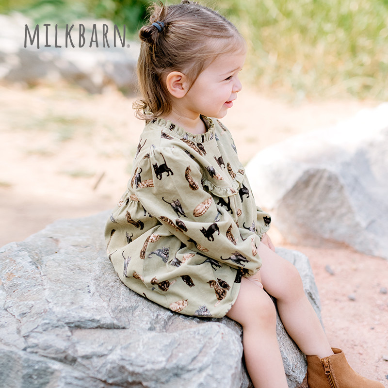 Milkbarn2025秋季新品女童长袖连衣裙纯棉套装宝宝童装花边领裙子