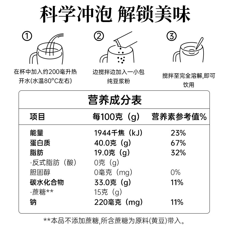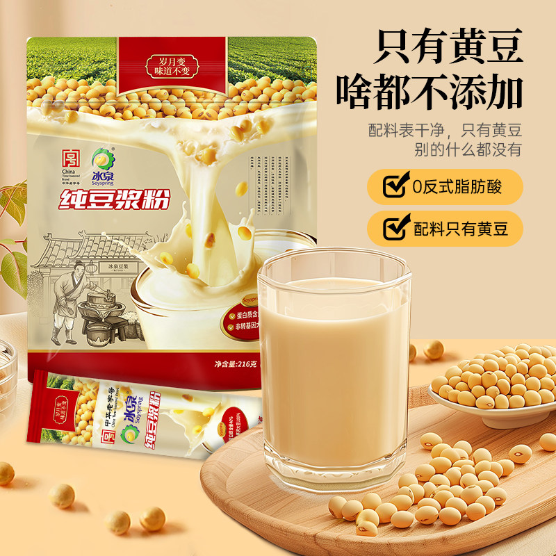 冰泉纯豆浆粉216g18g*2条原味无添加糖健身早餐专用黑豆冲饮冲泡