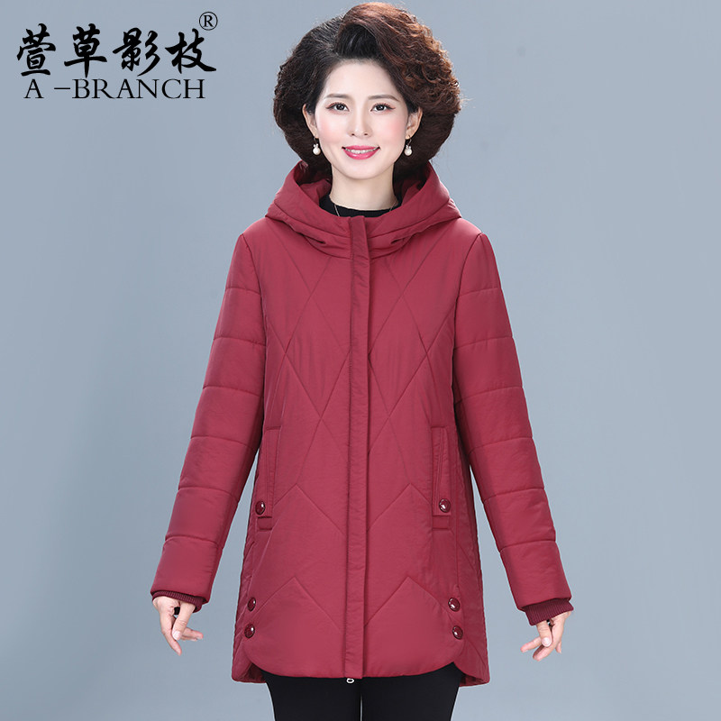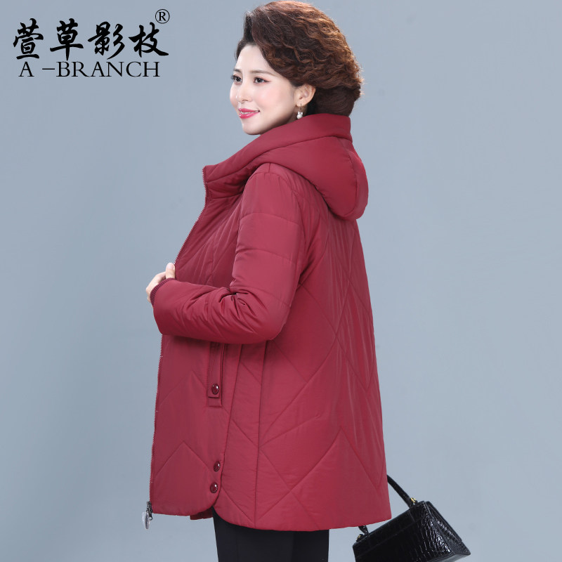 妈妈冬装洋气连帽羽绒服短款中年女时尚大码外套中老年保暖厚棉袄