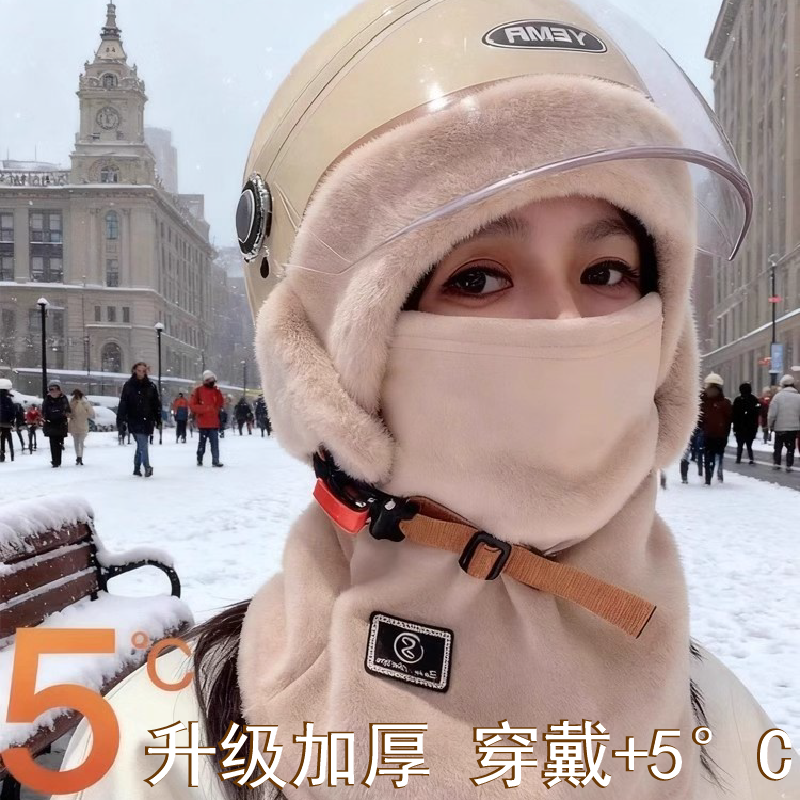 冬季骑车面罩围脖帽子男女冬北套头盔内胆帽加绒保暖防寒防风骑行