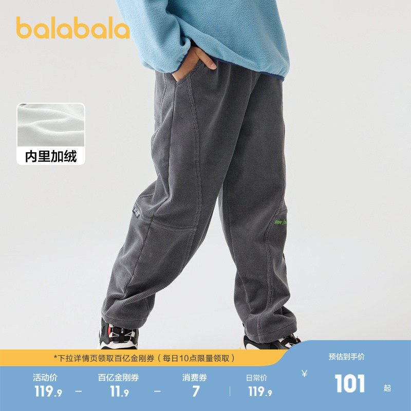 巴拉巴拉童装男童长裤加绒中大童裤子秋冬灯芯绒保暖时尚萝卜长裤