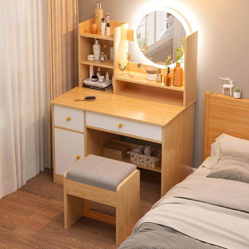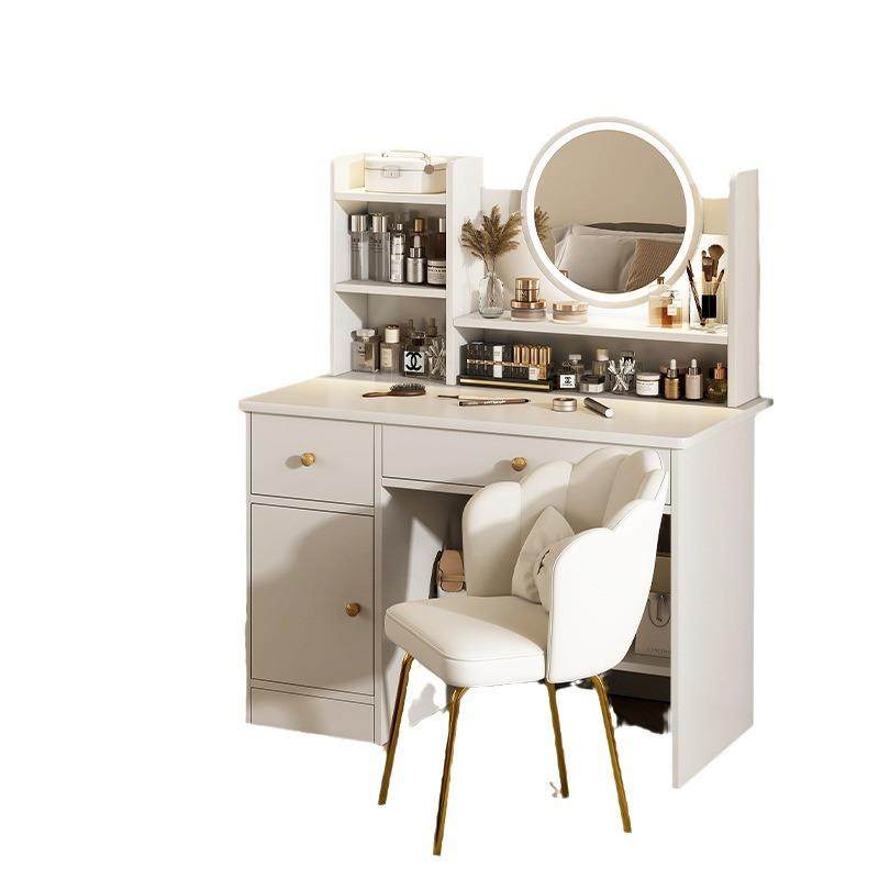 化妆台卧室现代简约化妆收纳柜一体书桌小户型主卧奶油风化妆镜子
