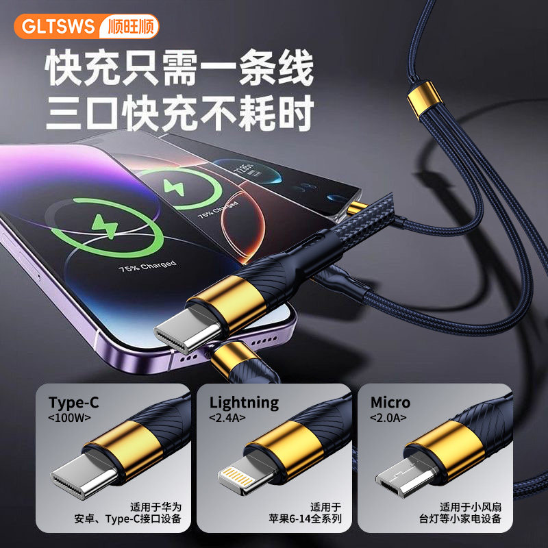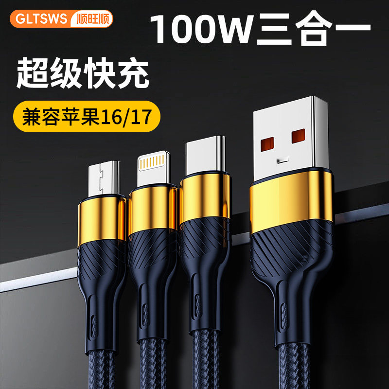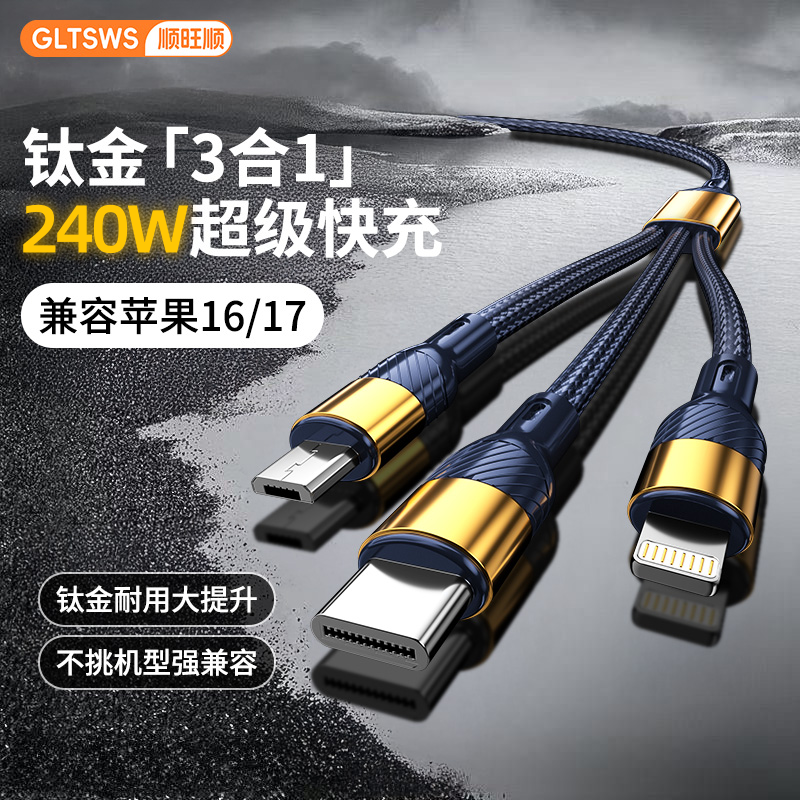 240W三合一充电线快充数据线超级快充车载多头编织充电器线适用苹果安卓华为mate70手机多头三线合一多功能