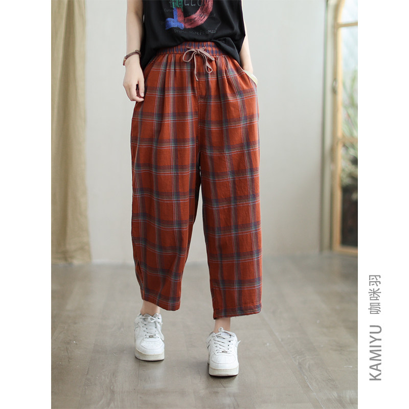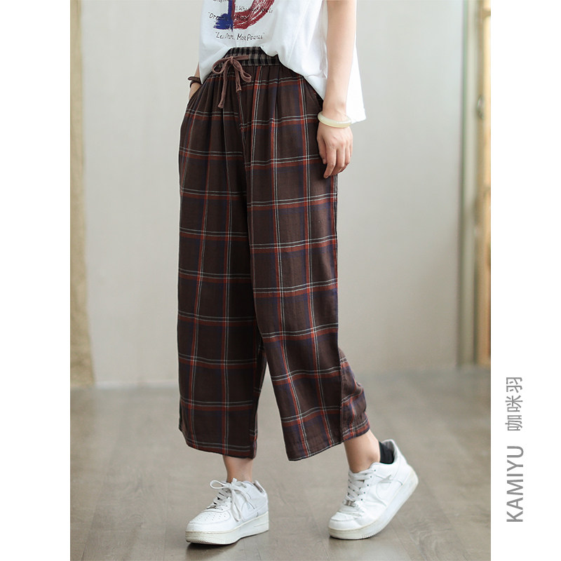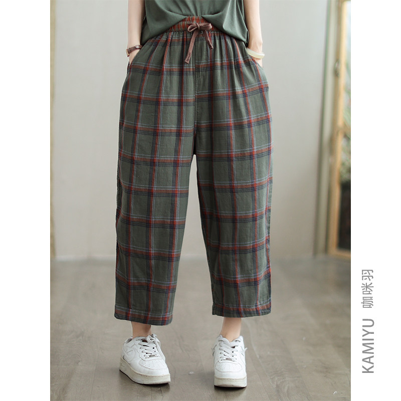 咖咪羽休闲裤女新款时尚文艺通勤百搭复古高腰直筒简约女双哈伦裤