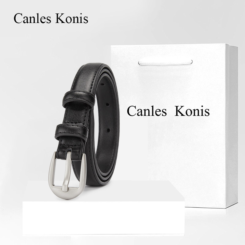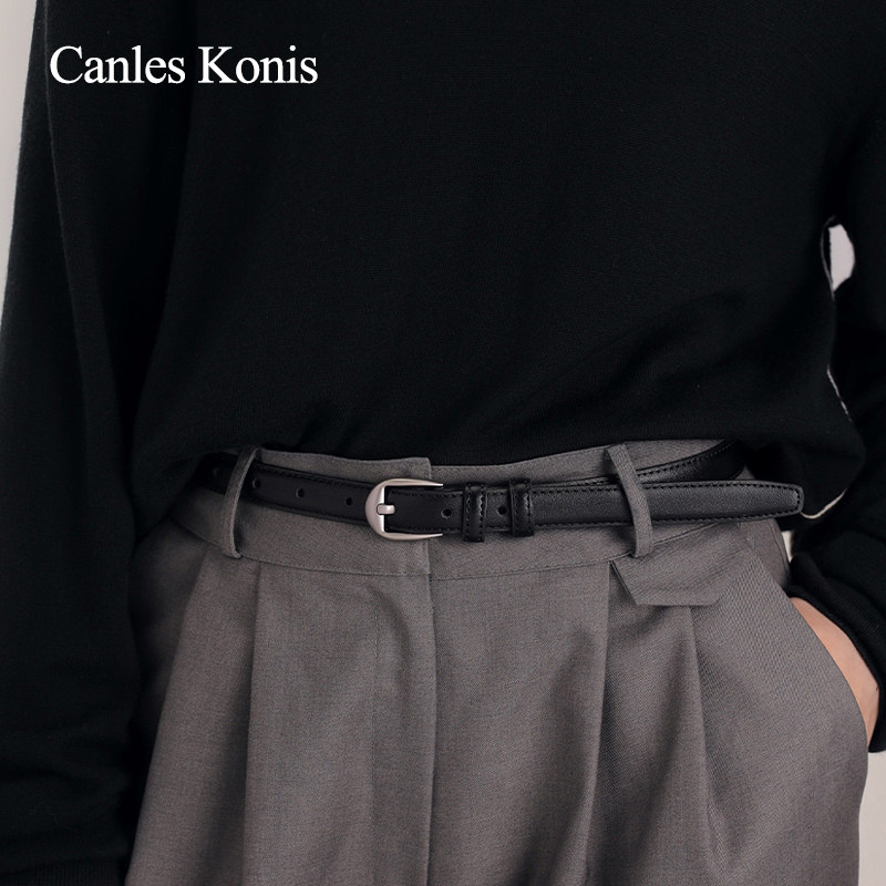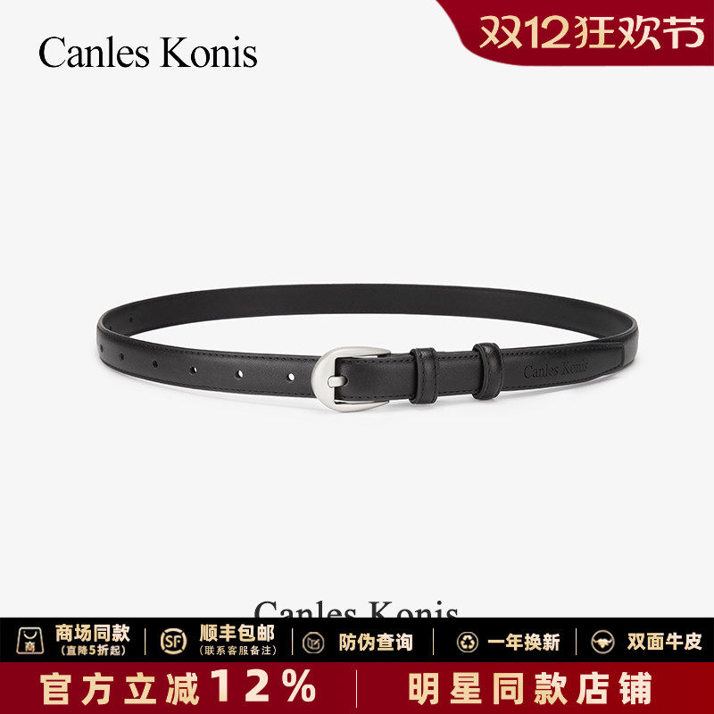 官网小Canles Konis黑色腰带真皮小皮带女细2025新款配牛仔裤裙带