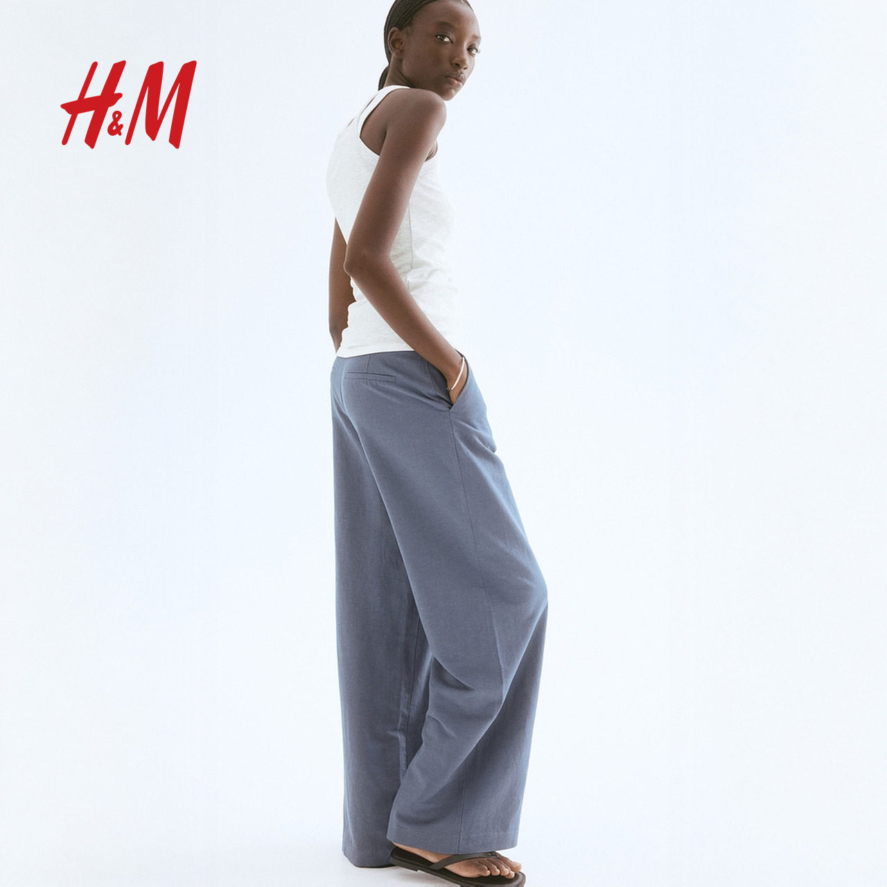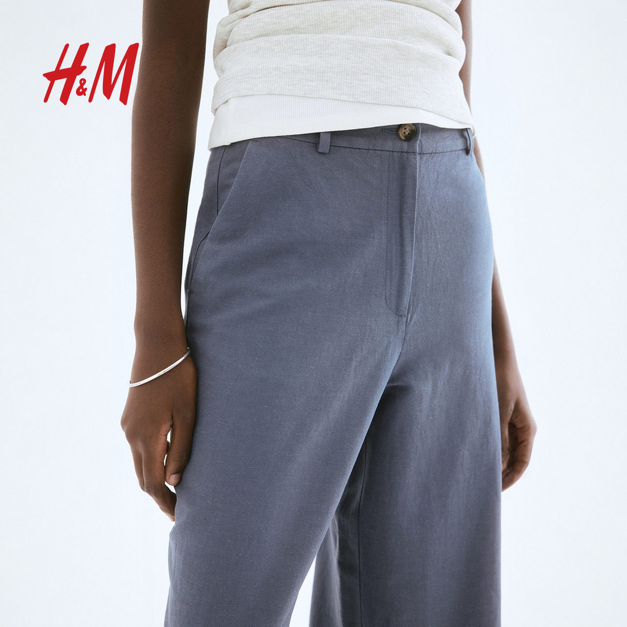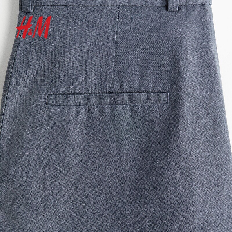 HM春季女装时尚休闲休闲亚麻混纺阔腿裤1259341