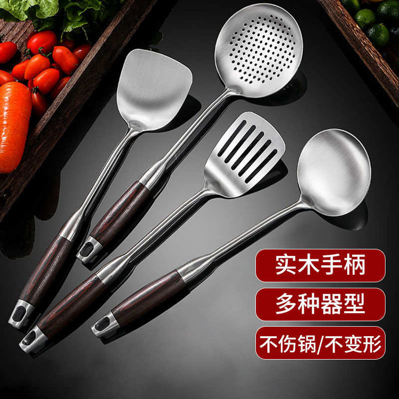 不锈钢锅铲家用套装炒菜铲子炒菜勺木柄汤勺漏勺加厚煎铲铲勺蘑菇