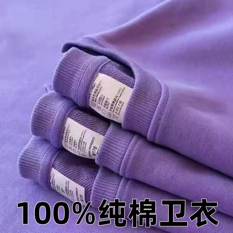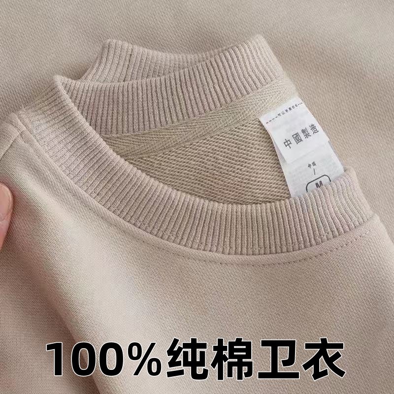 300克小毛圈100%纯棉卫衣男女同款宽松长袖上衣学生大码柔软打底