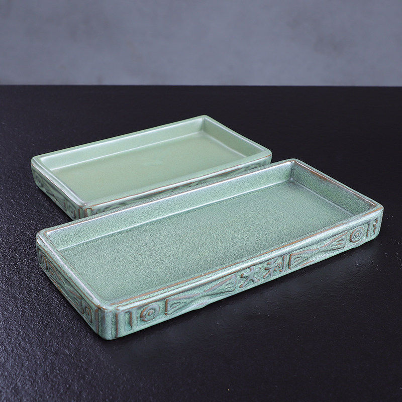 创意陶瓷长方形花盘花器接水垫托盘苔藓球菖蒲底座中式插花打香篆