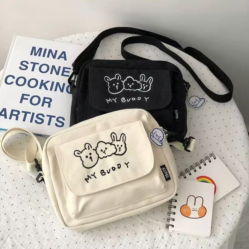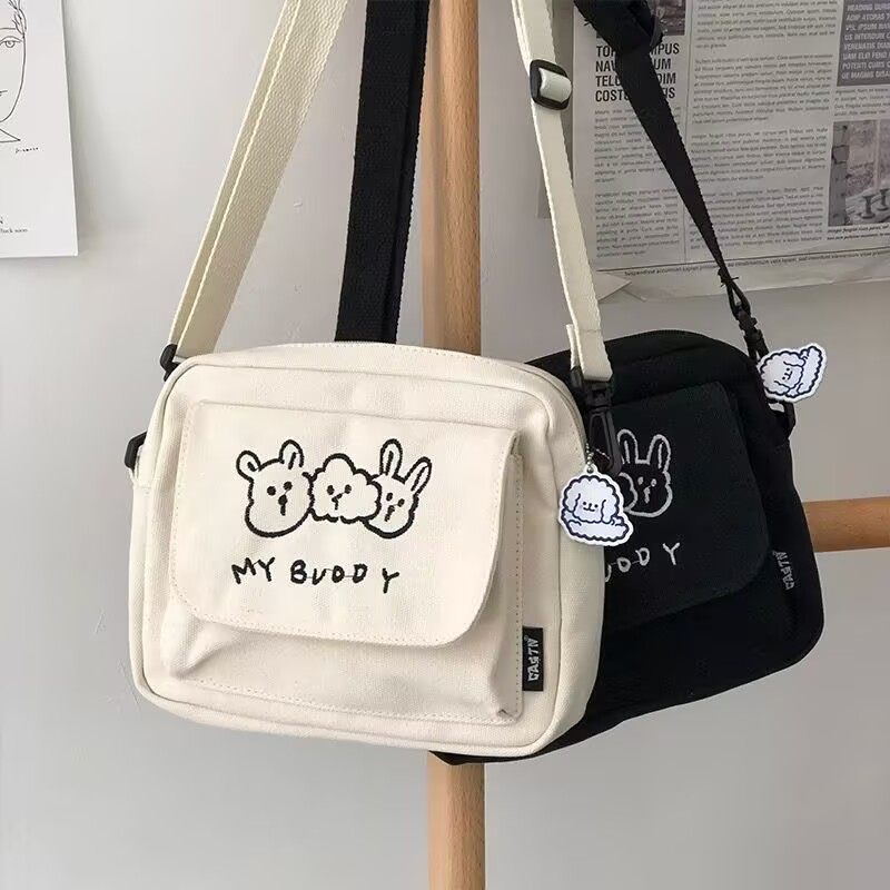 ins风百搭可爱小包包帆布包女斜挎包日系韩版运动学生手机包单肩