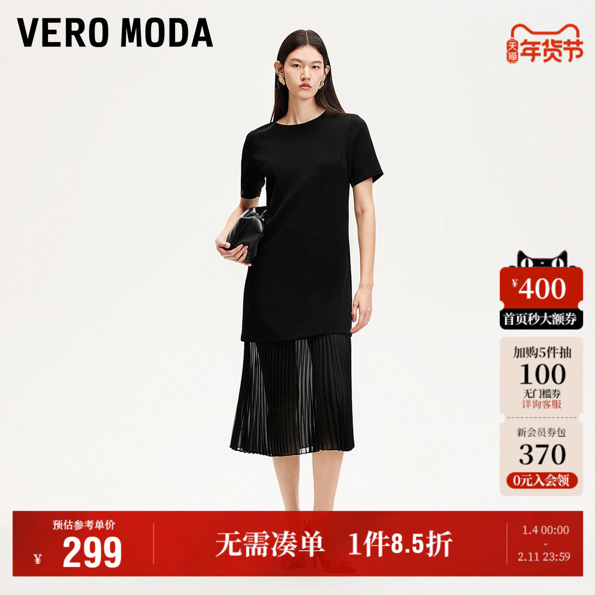 Vero Moda奥莱连衣裙2025秋季新款百褶拼接赫本风T恤裙优雅休闲