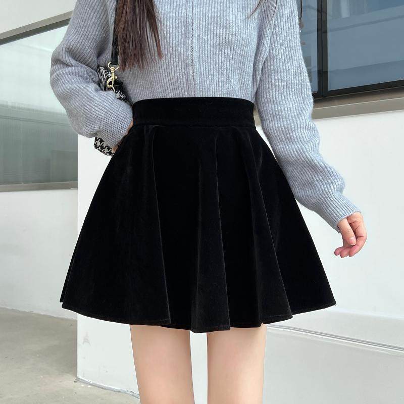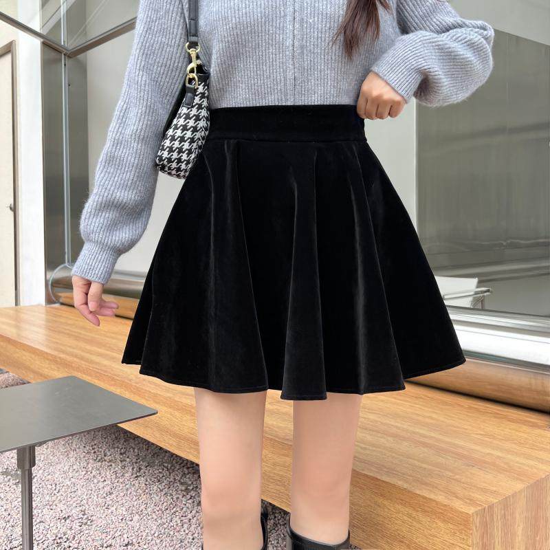 黑色金丝绒百褶裙大码秋冬a字半身裙胖mm高腰显瘦遮胯蓬蓬短裙女