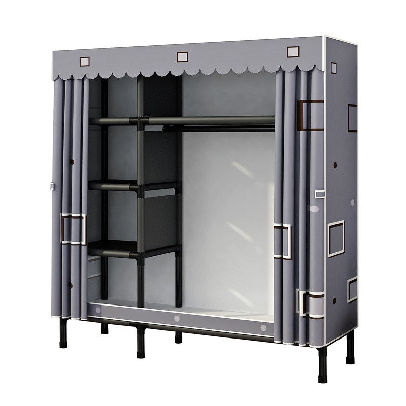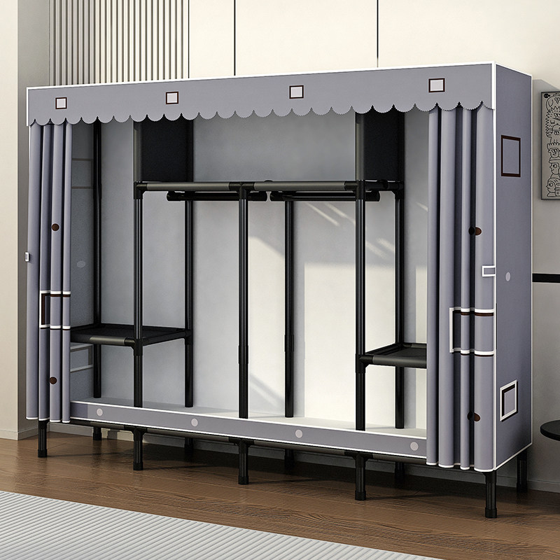 衣柜家用卧室简易组装布衣柜全钢架加粗加厚出租房结实耐用金属