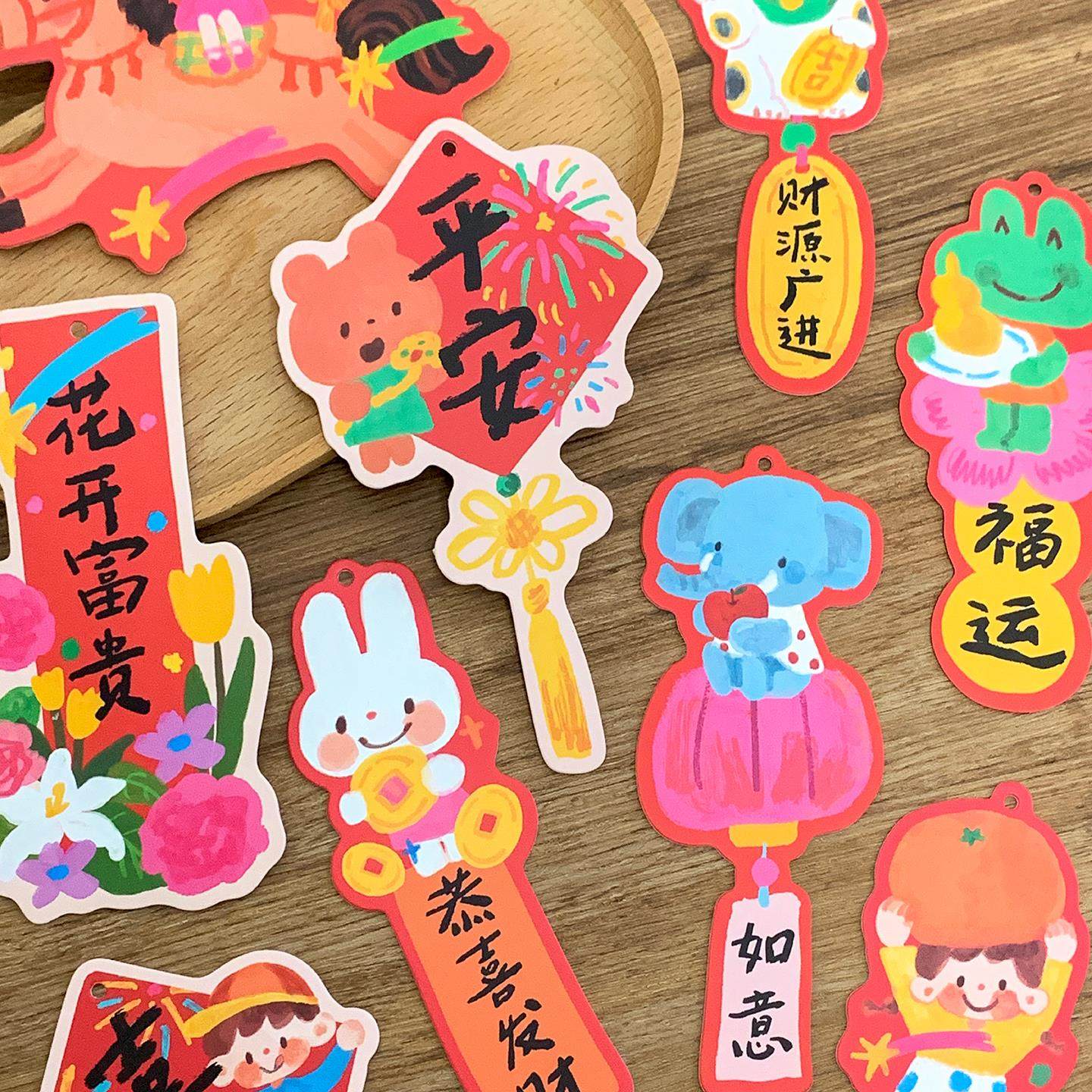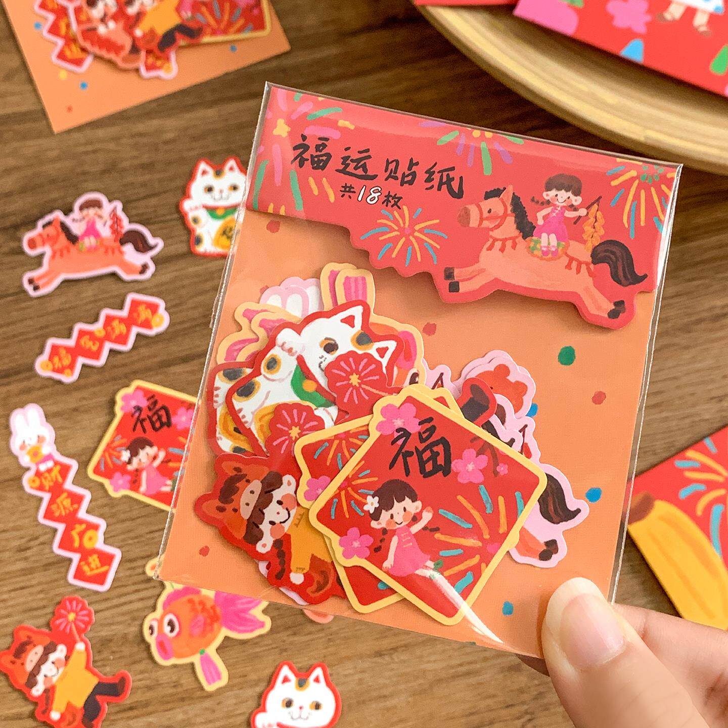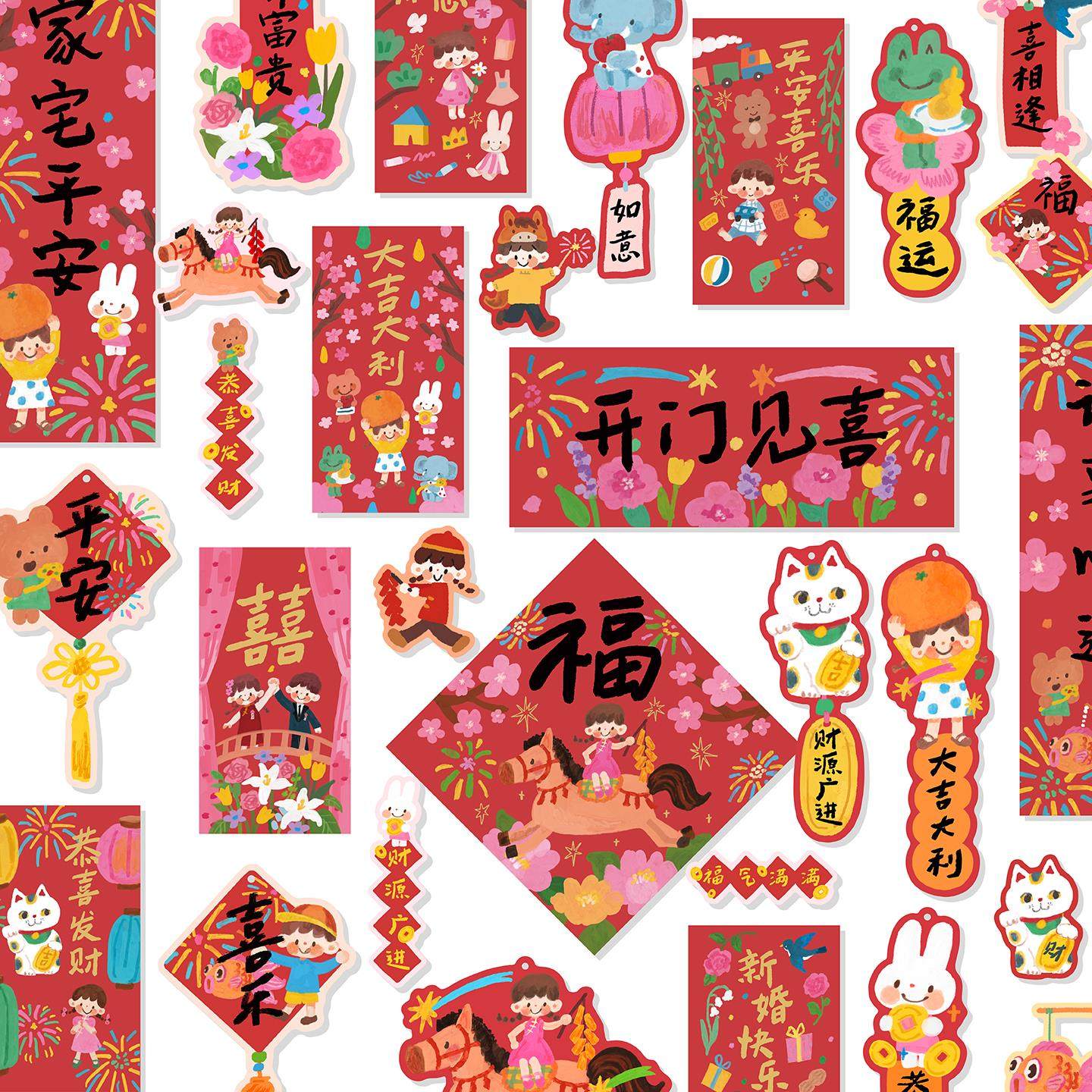 卓大王阿卓开心喜乐新婚快乐红包新年祝福对联有福mini贴纸挂饰