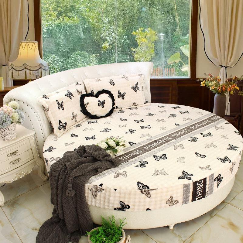 冬季保暖圆床席梦思保护套圆床床笠牛奶绒水晶绒圆床单床套可定制