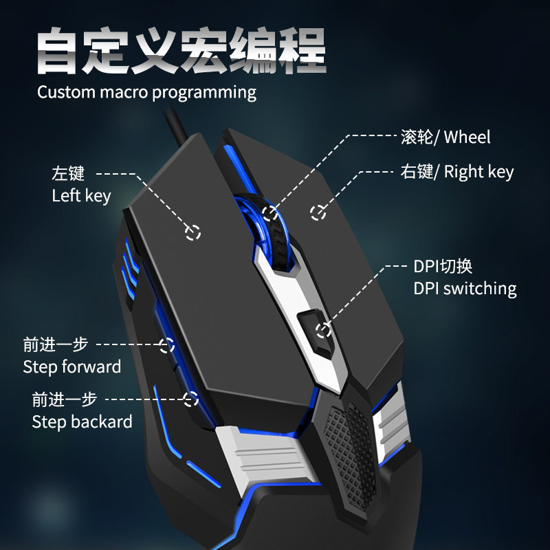 蝰蛇M12 游戏鼠标发光吃鸡电竞机械电脑笔记本USB有线工厂促销