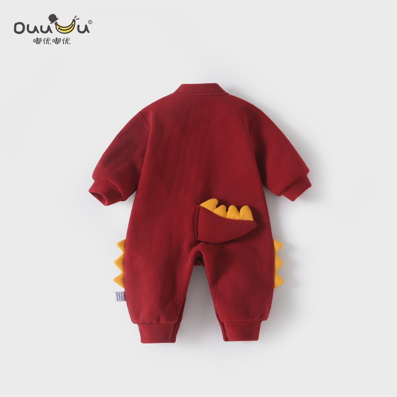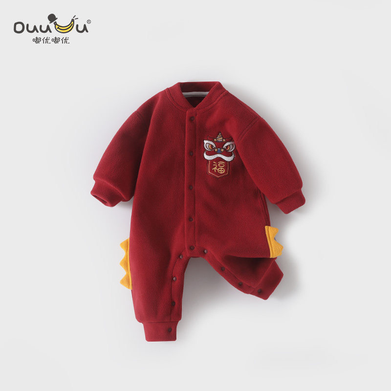 DuuDuu周岁宝宝秋冬装连体衣红色爬服过年满月婴儿哈衣拜年服