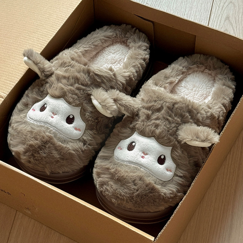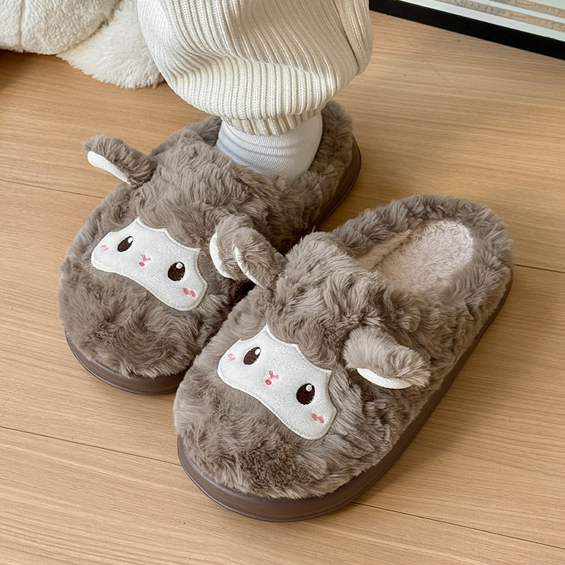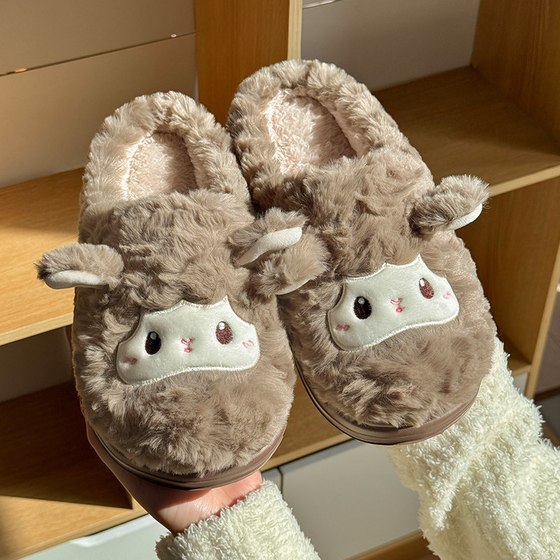 可爱小羊棉拖鞋女士2025新款冬季室内居家用厚底毛绒保暖棉拖女款
