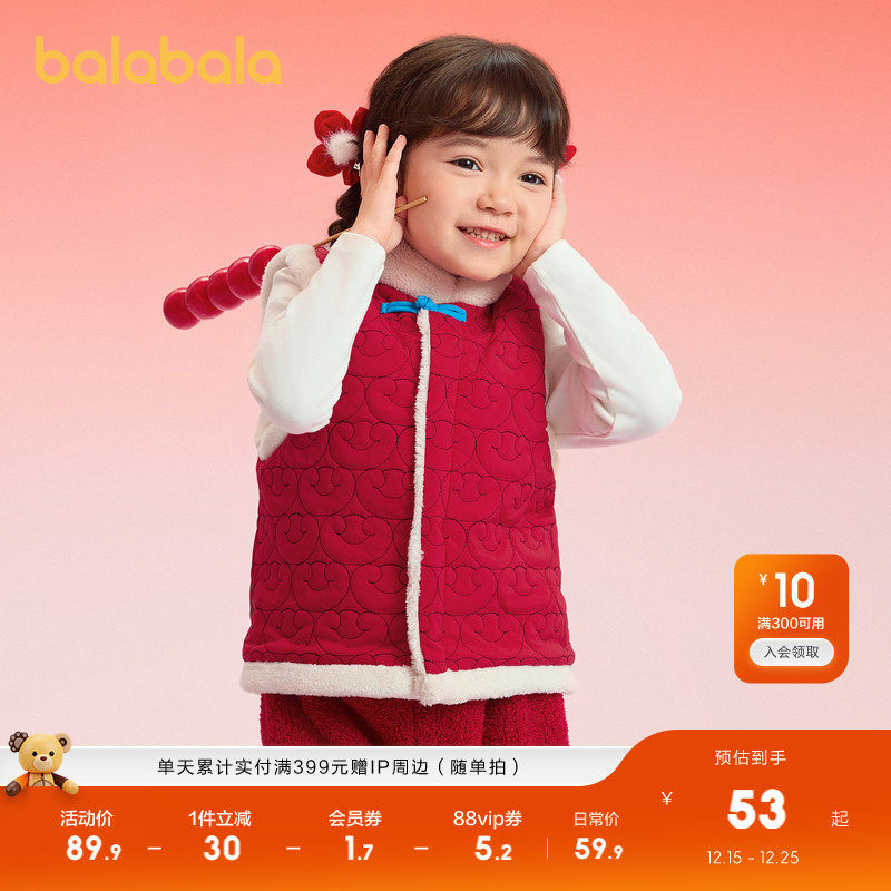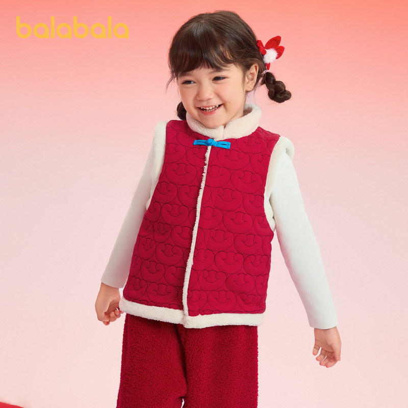 巴拉巴拉童装宝宝马甲夹棉2025新款男童女童背心儿童上衣红色加绒
