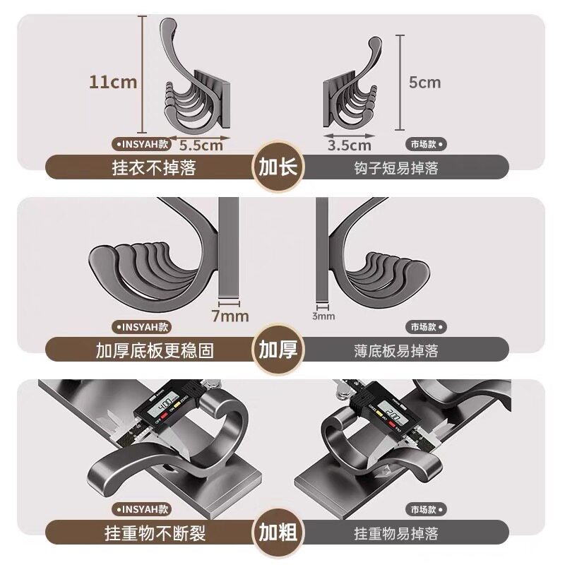 门后挂钩免打孔强力承重卫生间浴室厨房墙上壁挂粘胶钩挂衣架一排