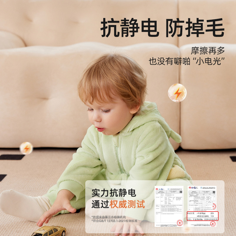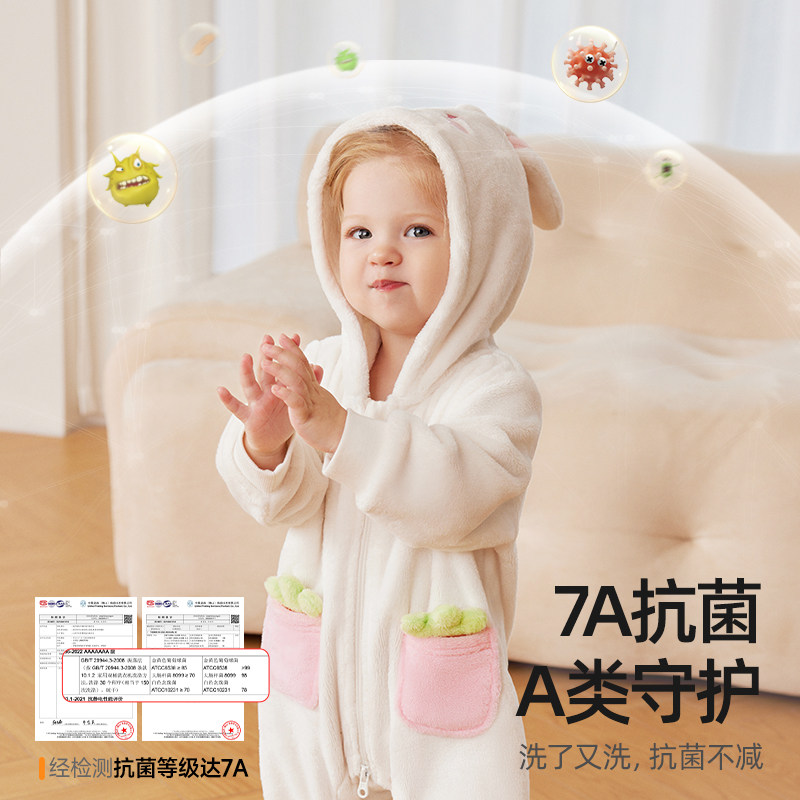 婧麒婴儿衣服秋冬德绒连体衣男女宝宝发热保暖新生儿打底睡衣冬款
