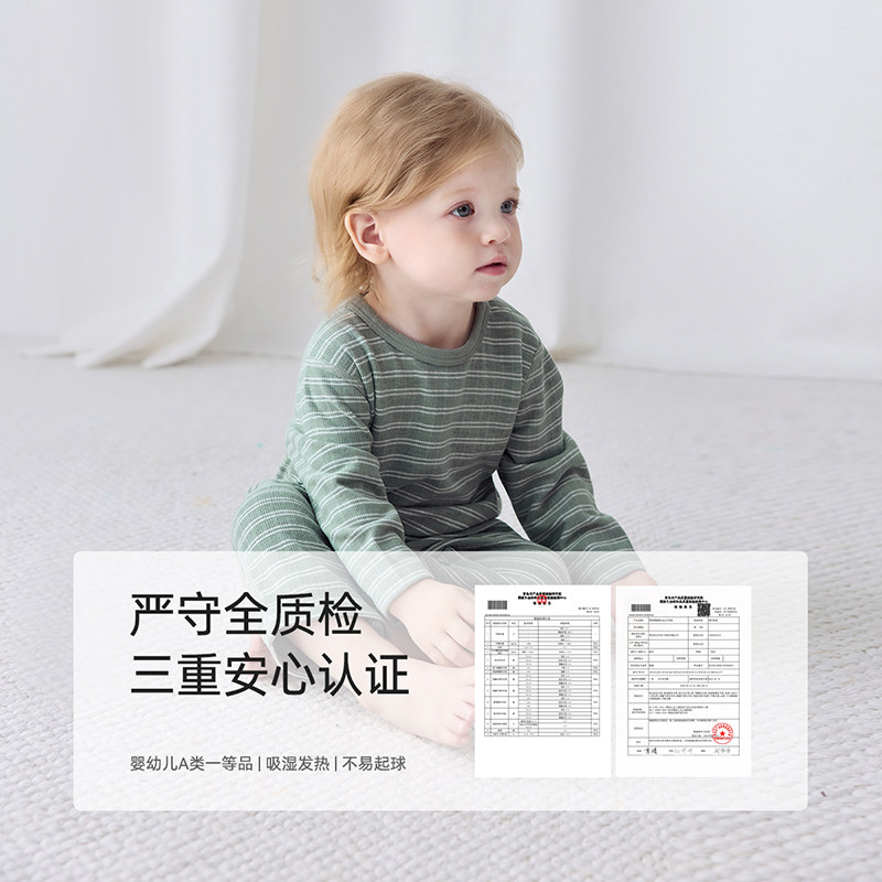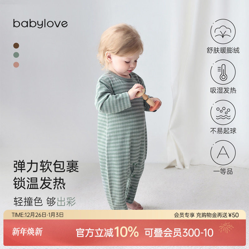 babylove婴儿连体衣秋冬款睡衣宝宝哈衣爬服条纹家居服保暖衣服