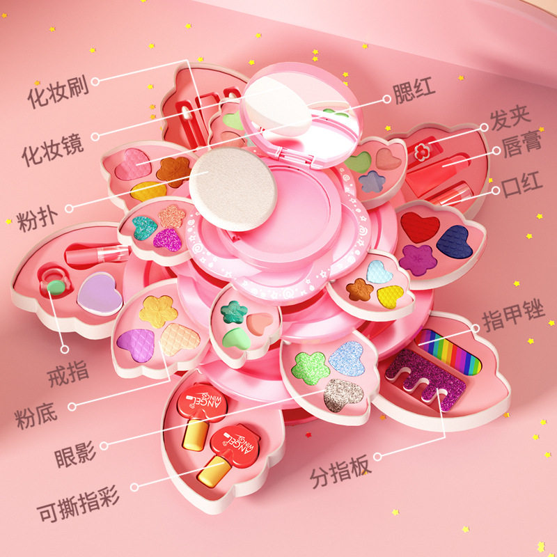 儿童女孩过家家彩妆玩具旋转化妆品盒套装公主饰品圣诞礼物指甲L
