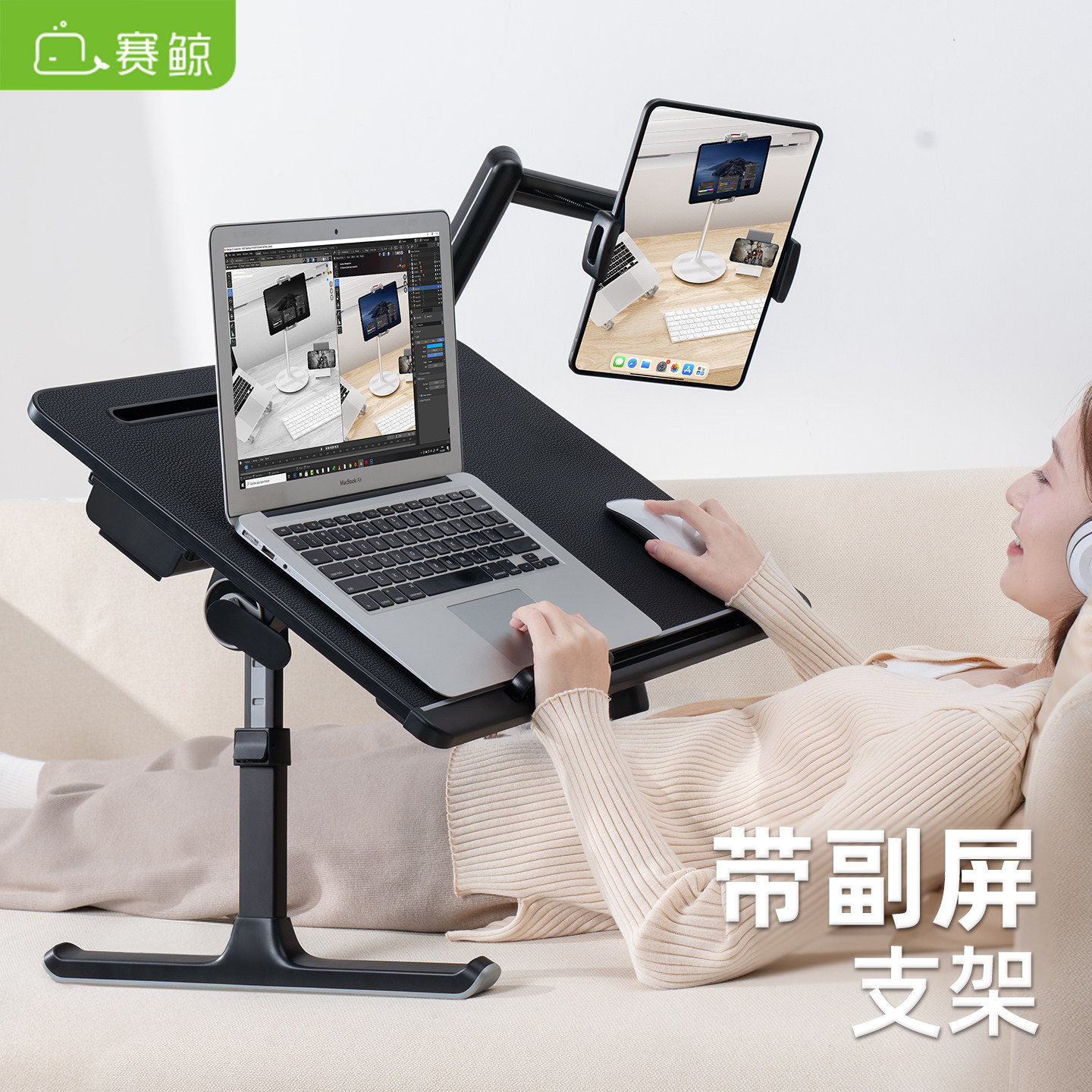 赛鲸新品K7支架版床上电脑桌平板副屏可升降折叠书桌宿舍学习床桌写字笔记本办公阅读懒人小桌板放床上小桌子
