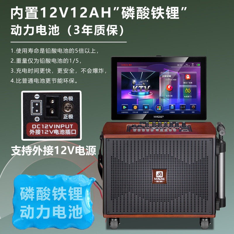 GT-608广场舞音响带显示屏户外家一体机用ktv套装音箱便携卡拉OK
