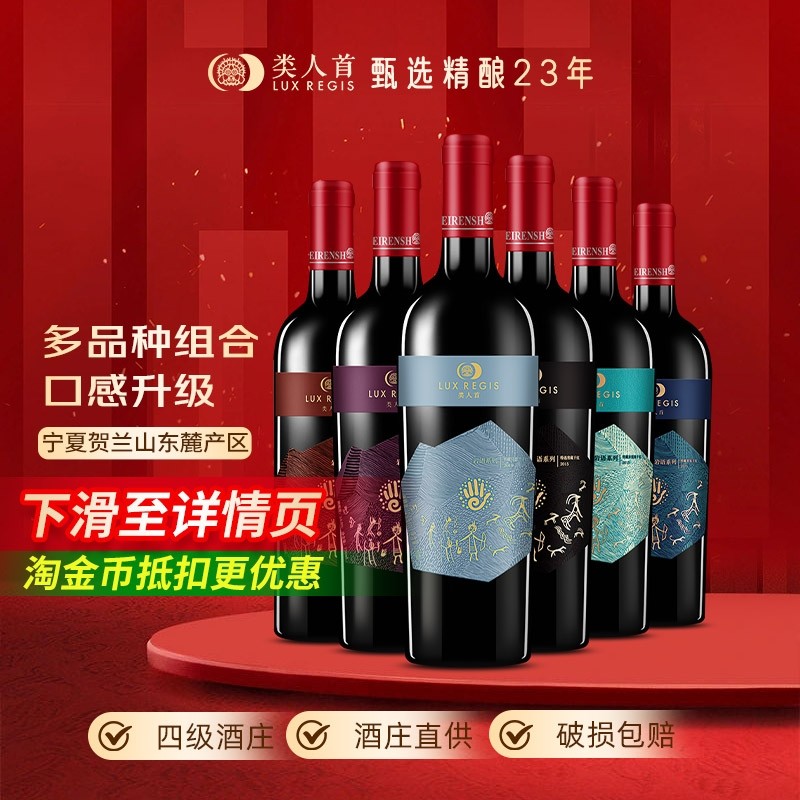 类人首宁夏红酒赤霞珠马瑟兰美乐干红组合750ml*6支装葡萄酒酒庄