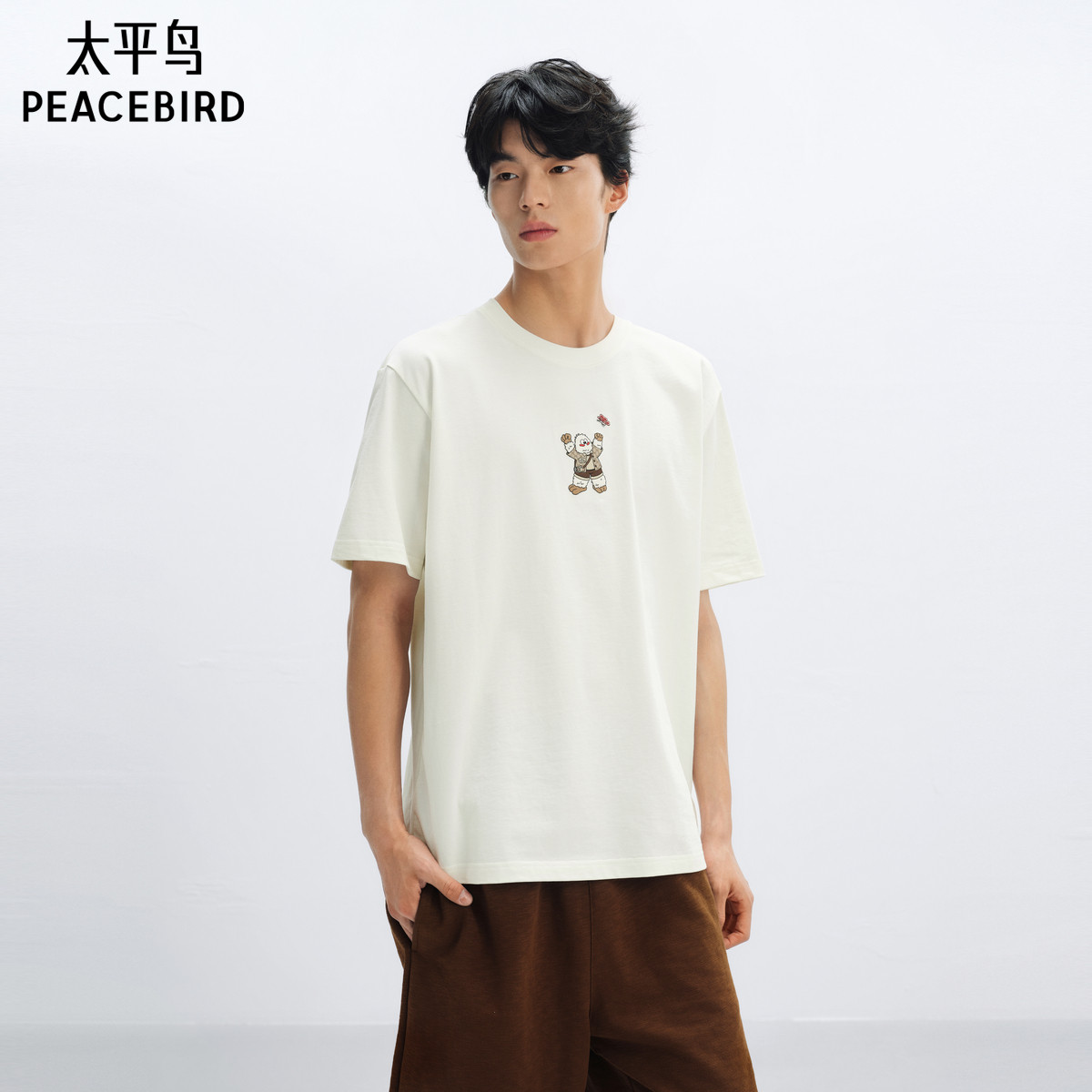 【艺术家系列】太平鸟男装重磅刺绣短袖T恤夏新款情侣t时尚体恤S
