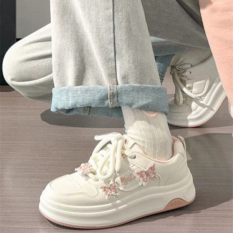巴布豆休闲板鞋女童2025春季新款小众鞋厚底小白鞋面包鞋运动鞋子