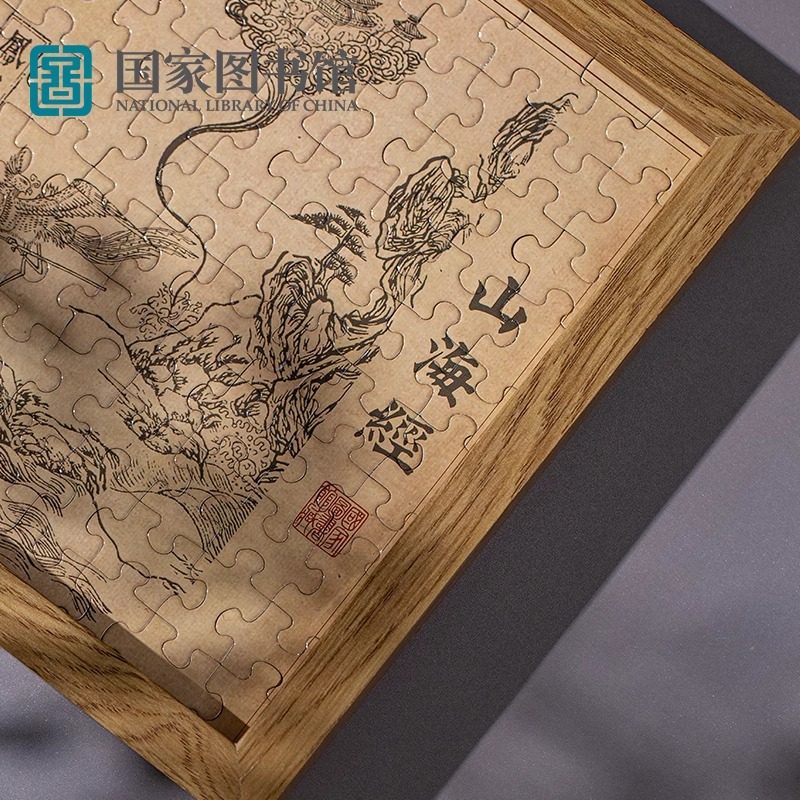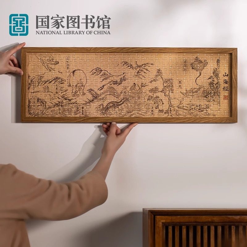 国家图书馆山海经资治通鉴相框拼图摆件手工木质送男女生日礼物品