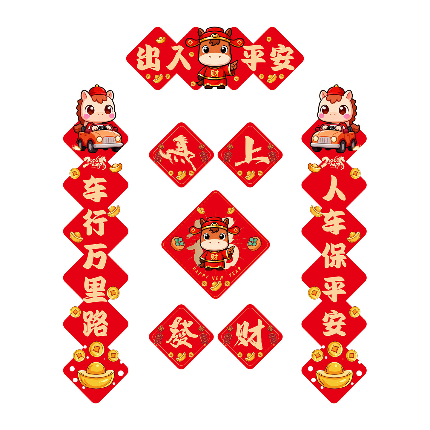 2026马年新春对联车贴春节汽车贴纸装饰过年防水贴油箱盖后视镜贴