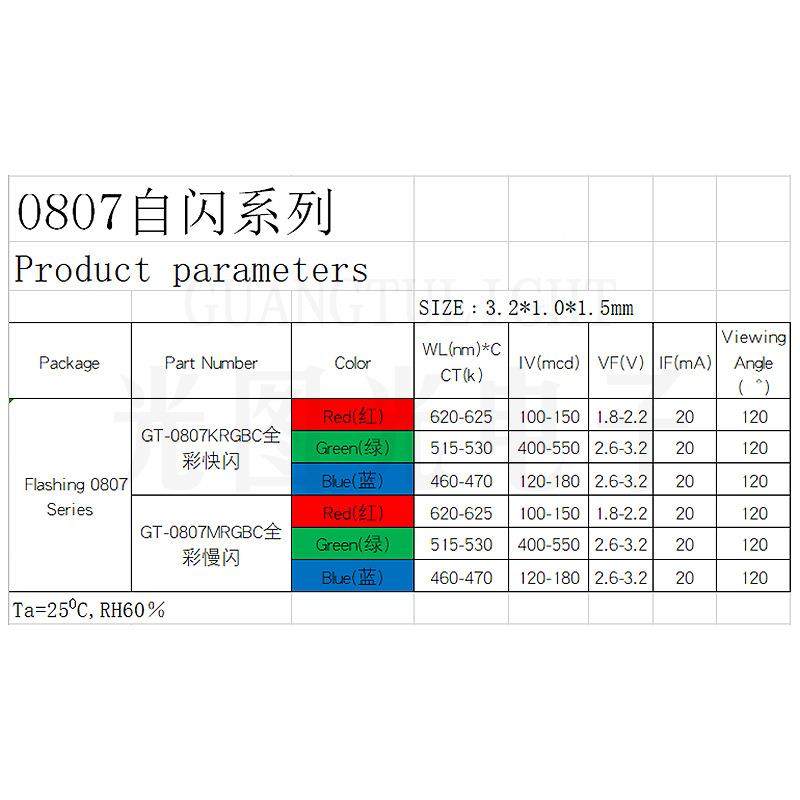 厂家直供0807RGB全彩快闪led灯珠0807内置IC红绿蓝三色发光二极管