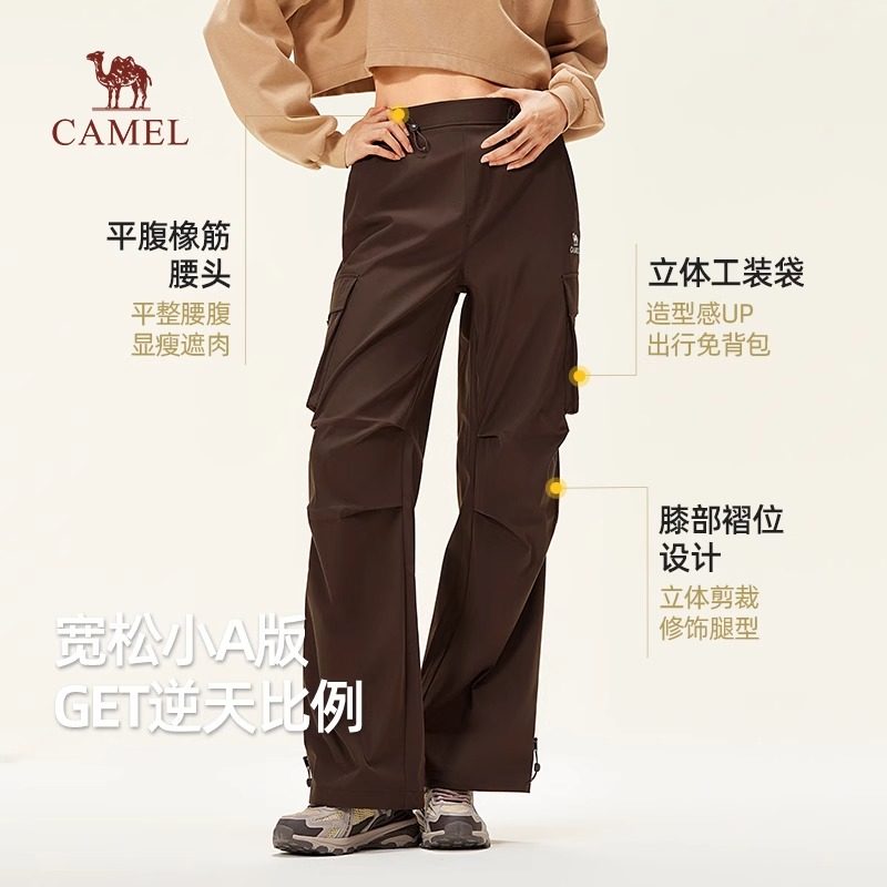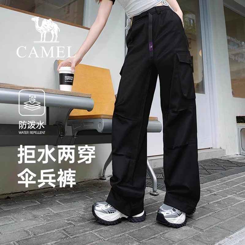 Camel骆驼女装梭织长裤新款拒水工装裤户外徒步束脚百搭长裤子女