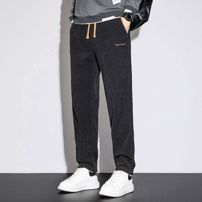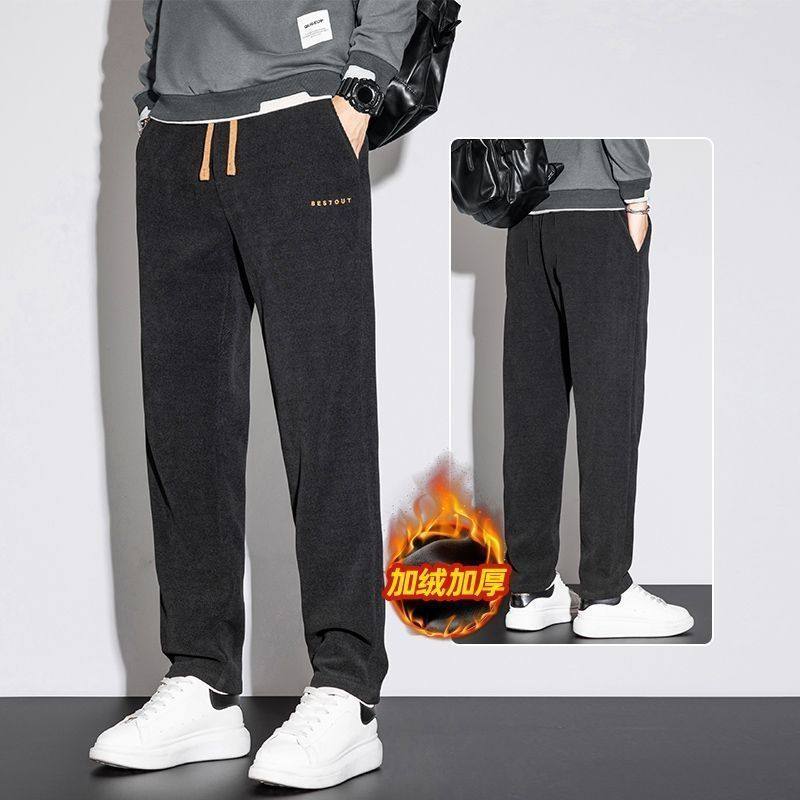 灯芯绒运动卫裤男士秋冬新款加绒长裤美式宽松工装裤男直筒休闲裤