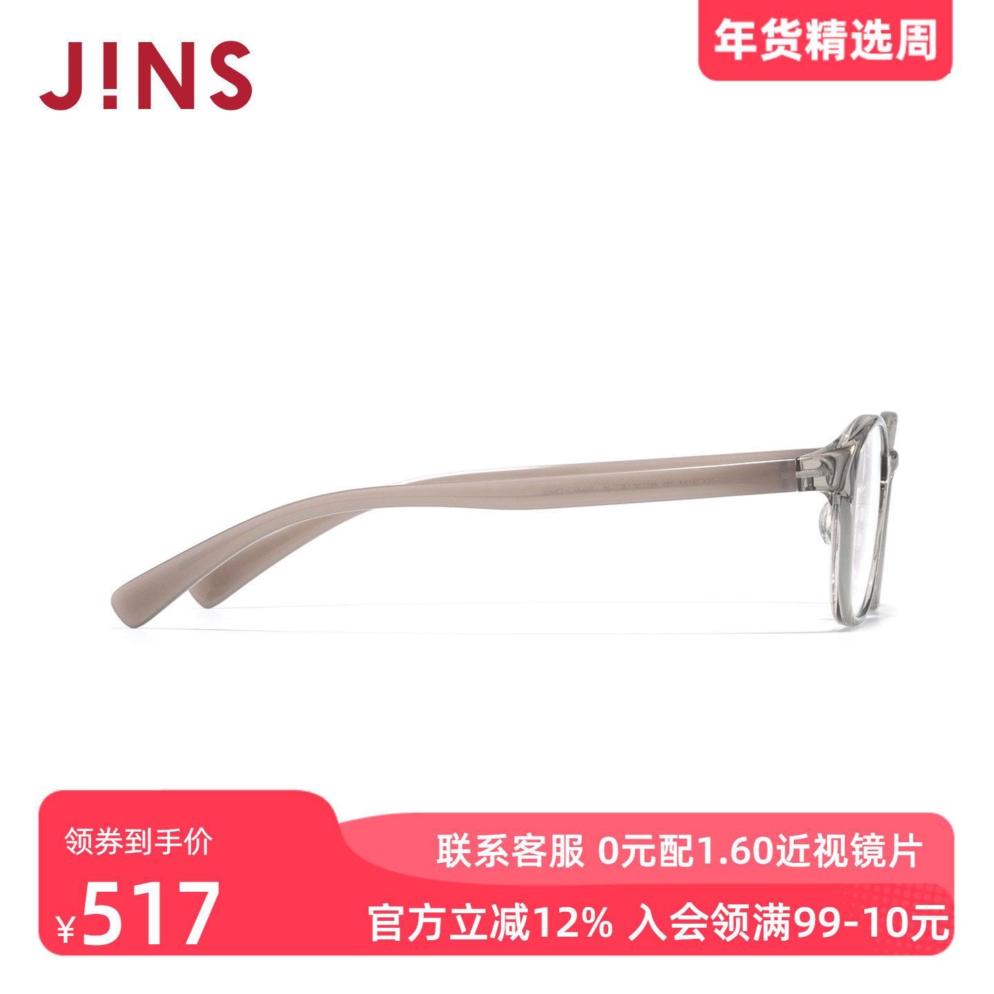 JINS睛姿HOME近视眼镜小方框百搭休闲可加配防蓝光镜片UGF25A161