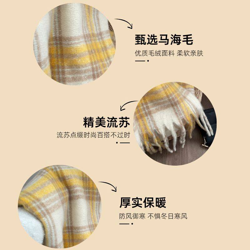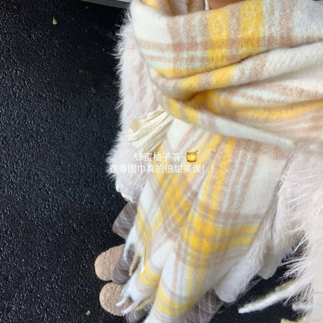 韩系高级感围巾女冬季2025新款百搭显白奶黄格子披肩加厚保暖围脖