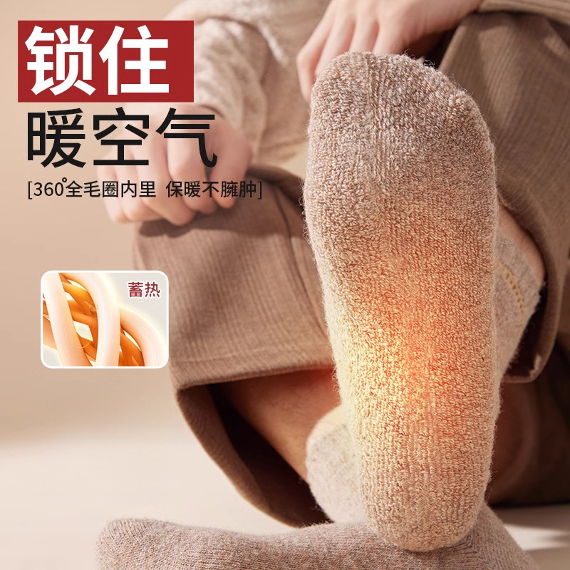 【送3双同款】秋冬新疆棉厚款中筒袜纯棉纱线毛巾底袜子男长袜女