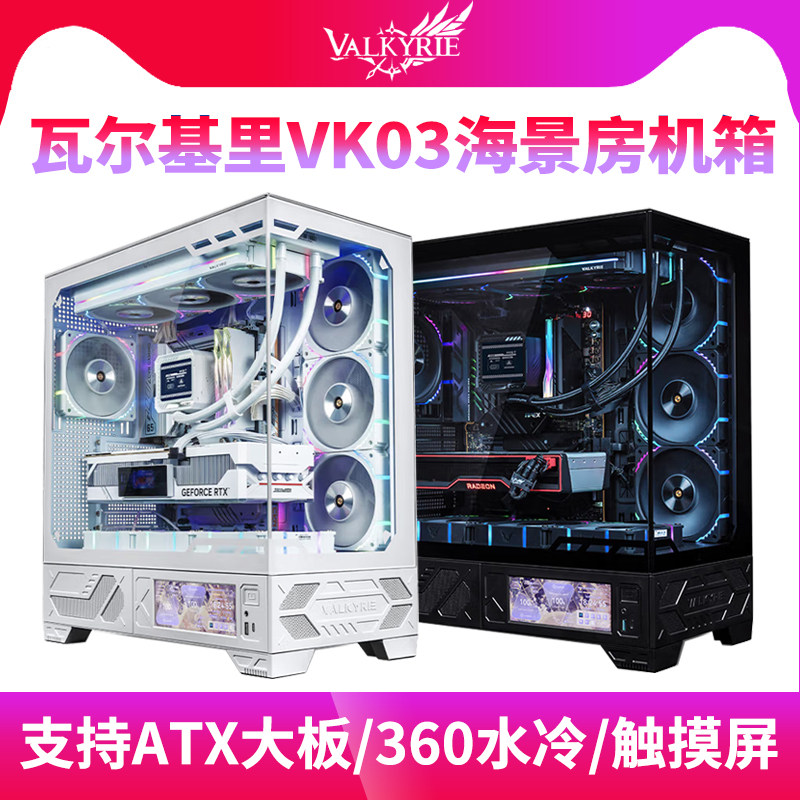 瓦尔基里VK03海景房白色电脑机箱360水冷ATX机箱带6.2英寸触摸屏